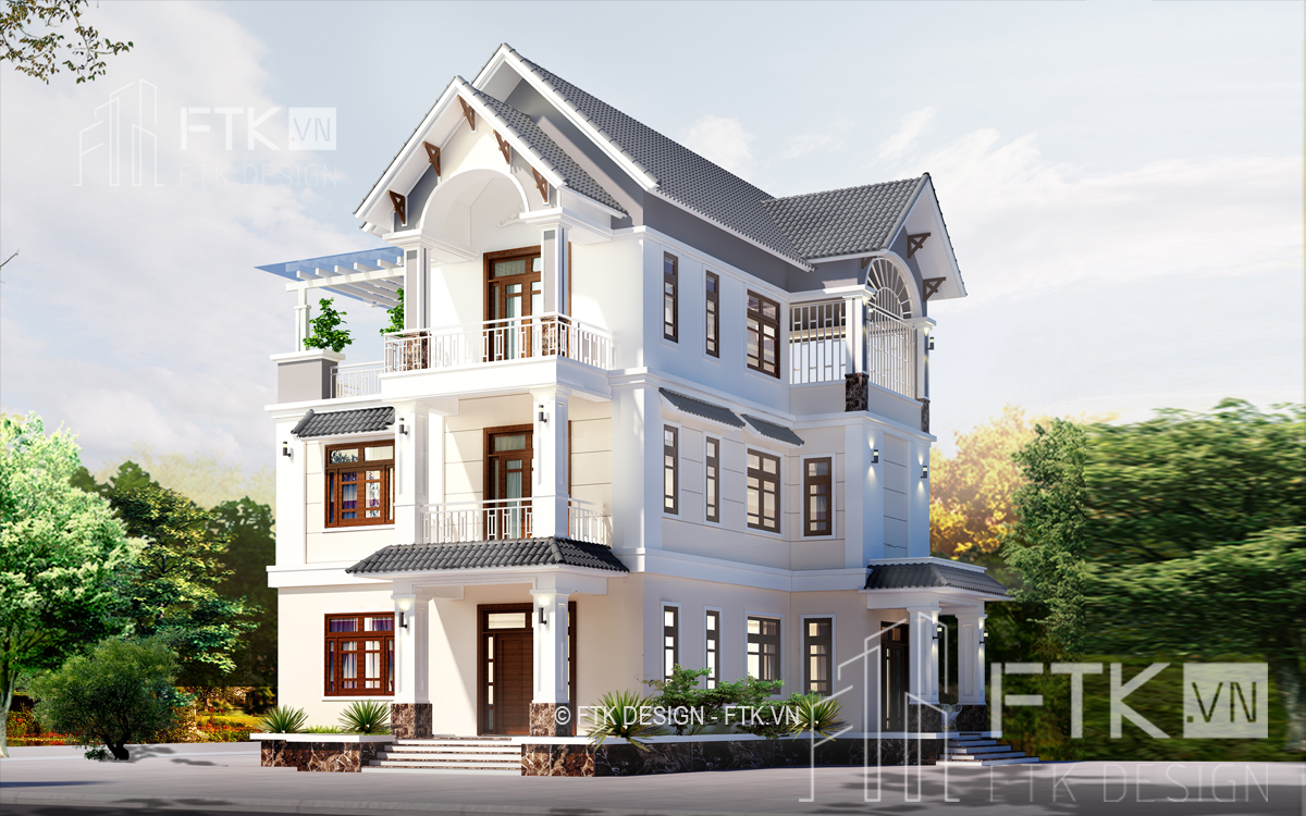 Thiết kế biệt thự mái thái 3 tầng đẹp hiện đại tại Tuyên Quang cho anh Tiến.